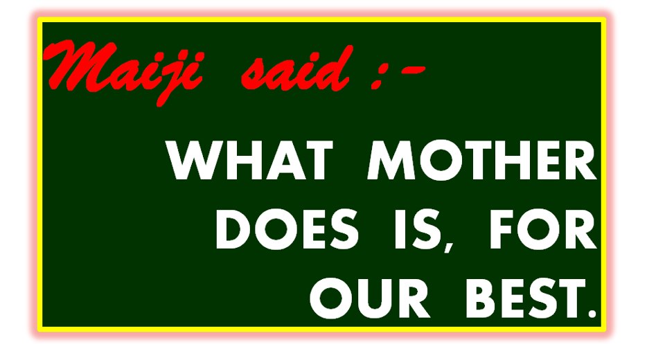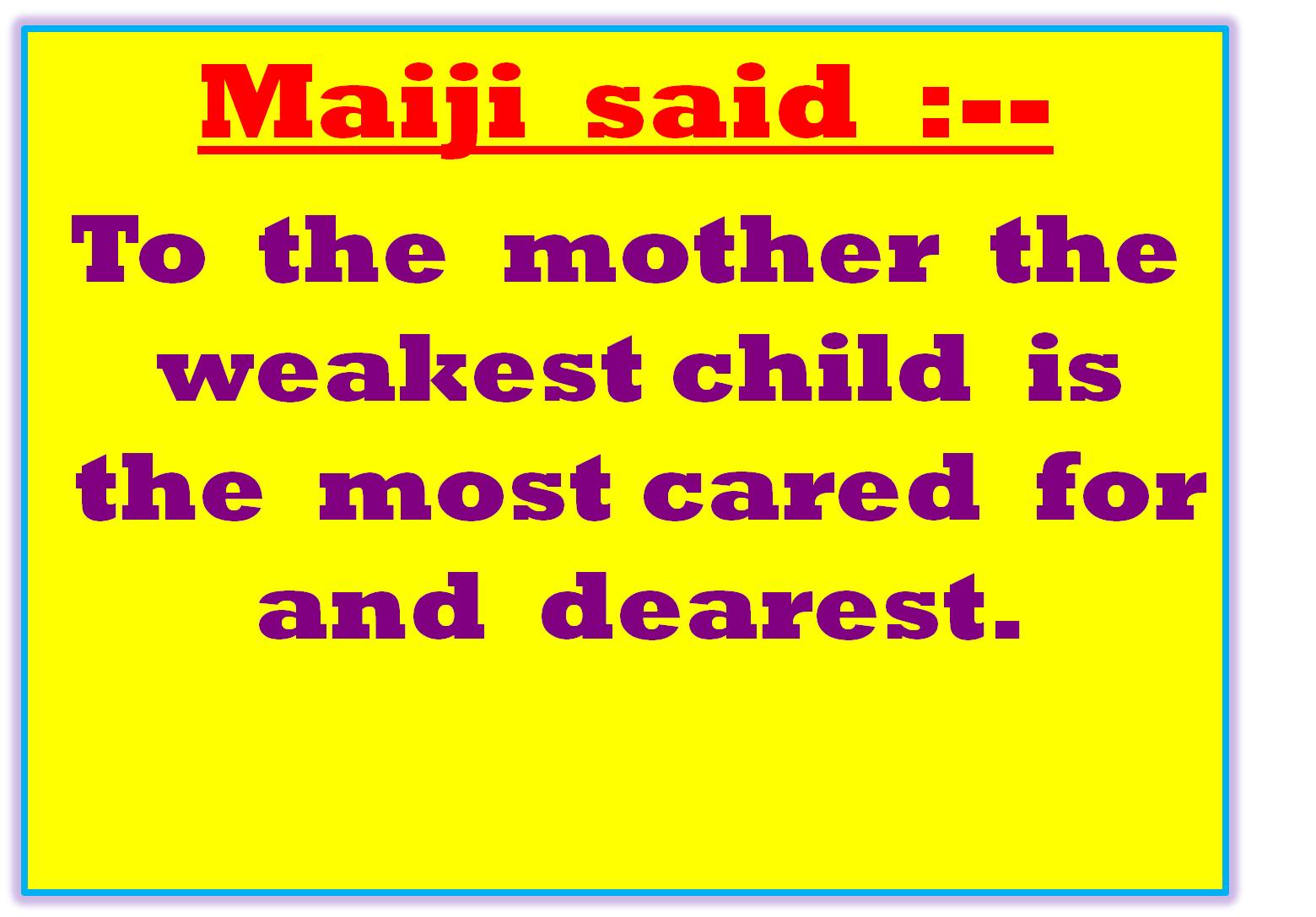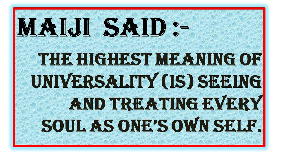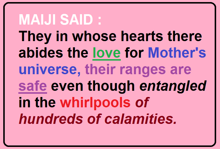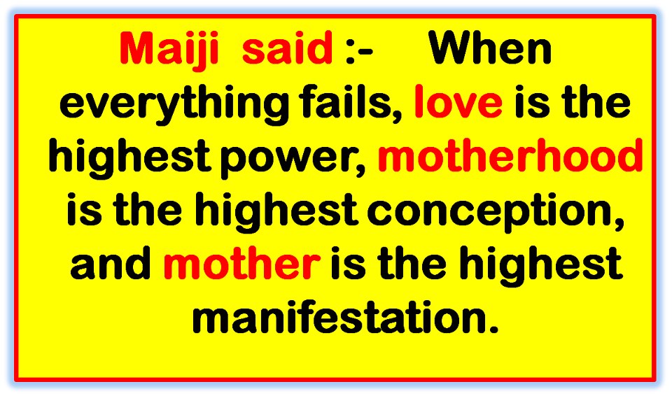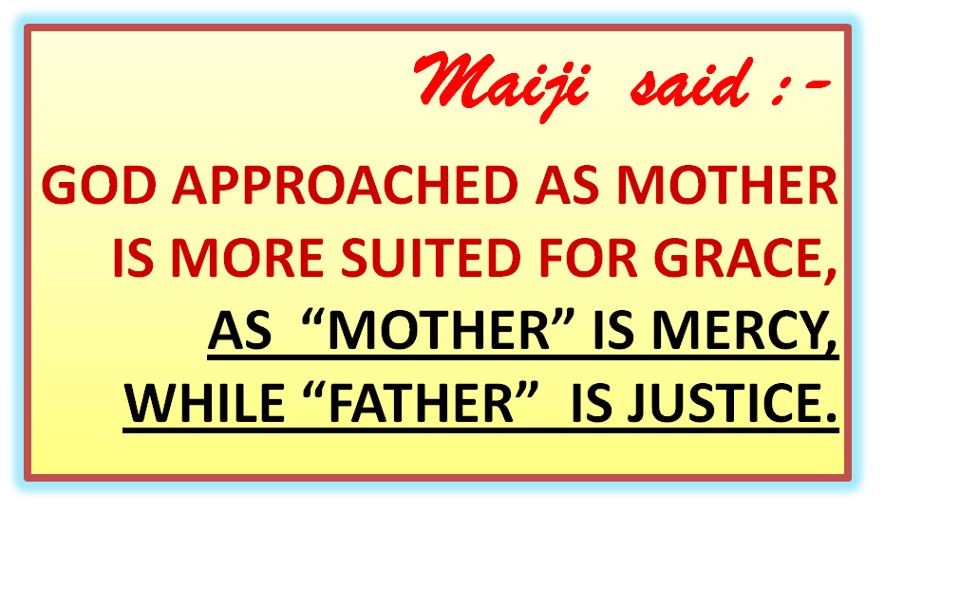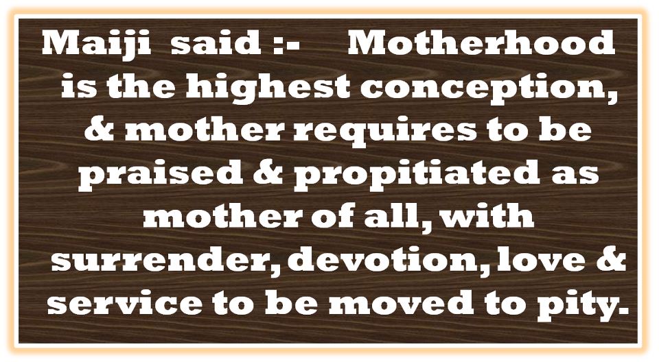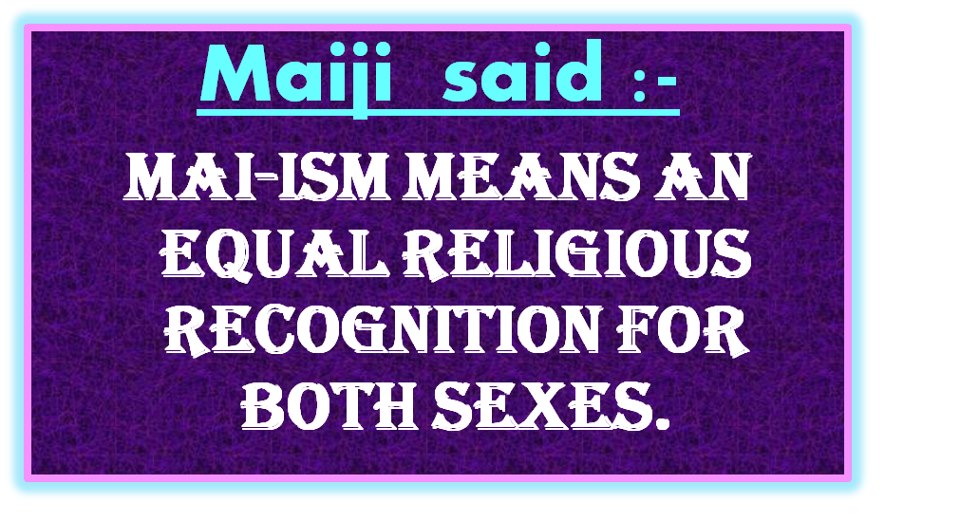 However, Maiji calls upon you, sisters and daughters, not to pull the world to be reduced to be still worse, from the frying pan into the fire. Please, for Mai’s and Maiji’s sake, fully understand what Mai-ism and Maiji teaches. Maiji wants you to refer to the “ Woman’s Status ‘ in ” Mai Sahasranama” Vol. I, page 21.
