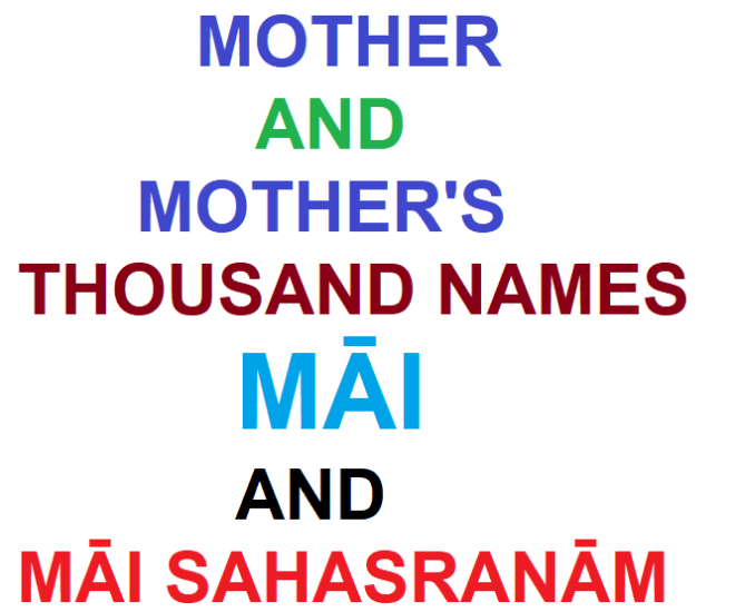 Mother has no name and no form, which means from another view-point that Her names and forms are infinite.