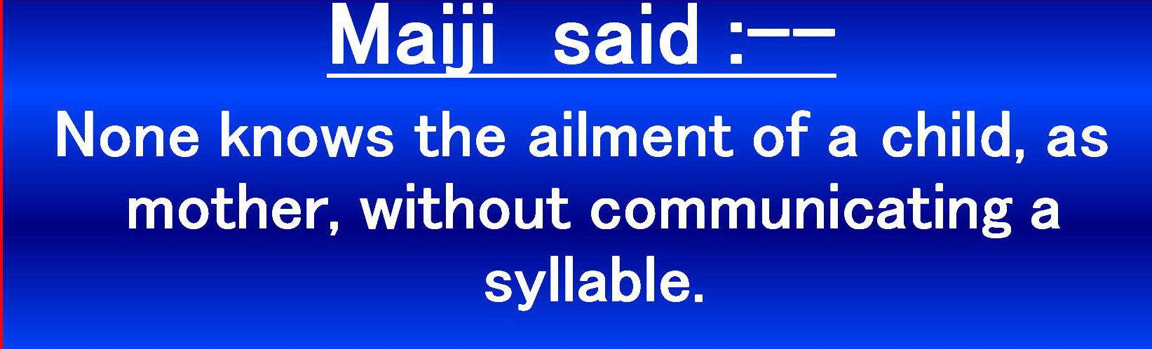 EXTRACTS FROM THE BOOKLET “MOTHER’S MESSAGE” BY SAINT SHRI. MAI SWARUP MAI MARKAND (MAIJI) & PUBLISHED BY MAI ADHERENTS’ INSTITUTE [UNIVERSAL MAI-ISM TRUST],MAI NIWAS, SARASWATI ROAD END, SANTA CRUZ (WEST), MUMBAI 400054, INDIA.